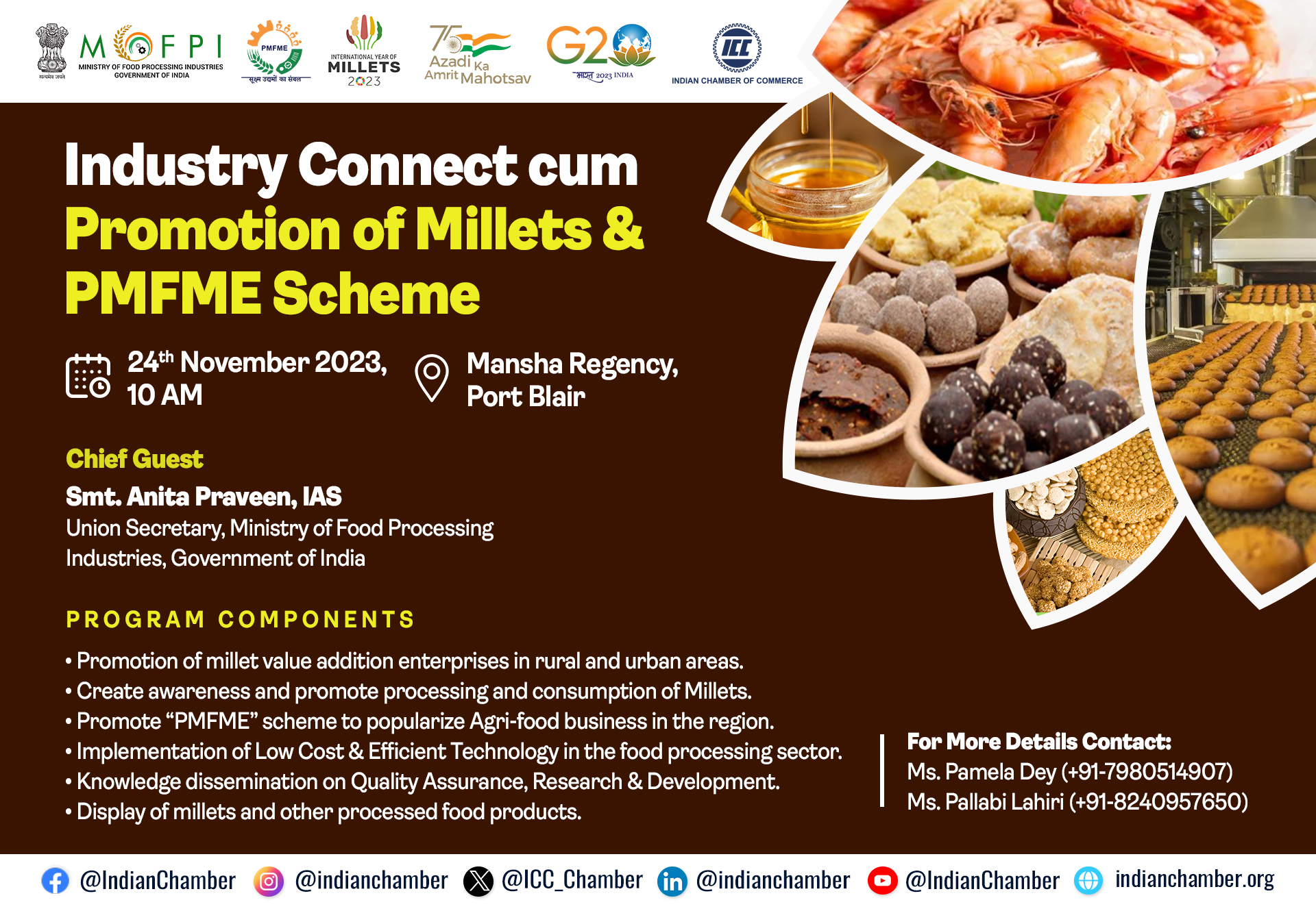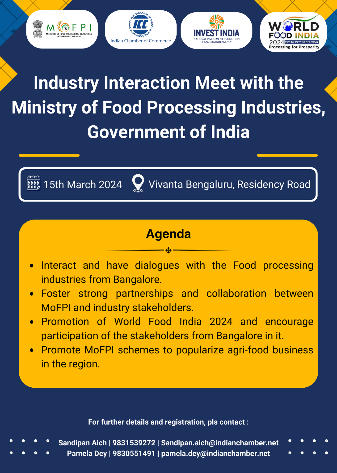 The India International Potato Expo 2008 and the Second Green Revolution Summit and Expo at Agro Protech 2008 in September 2008, Agro Protech 2009, India International Potato Expo 2010, Tripura Food Pro, Orissa Food Pro, Arunachal Pradesh Food Pro, Singapore Investors Meet, Agro Protech 2011, Mizoram Food Pro, India International Potato Expo 2012, Horticulture & Food Processing Conclave 2013, Agro Protech 2013, Assam International Agri Horti Fair 2014, Agri Horti Food Fest 2014 are a few of the many initiatives that the Chamber has taken in promoting agri and food business in the state and beyond.