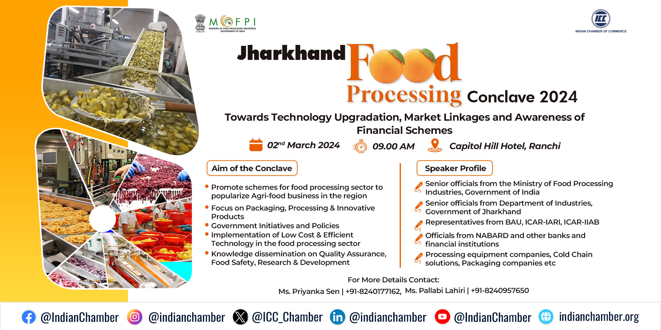 Given the growing importance of the Agro and Food Processing Sector in the Eastern region, the Indian Chamber of Commerce has formed the largest forum involving all stakeholders in the agro and food processing sector for facilitating growth and development. This Forum is uniquely positioned as an all-industry trade association, representing the interests of every segment of the Agriculture & Foods industry from Eastern region including, Growers, Cold storage / Cold Chain, Processors, Equipment provider, Retailers, Foodservice Operators, logistics Providers, Distributors and Suppliers.