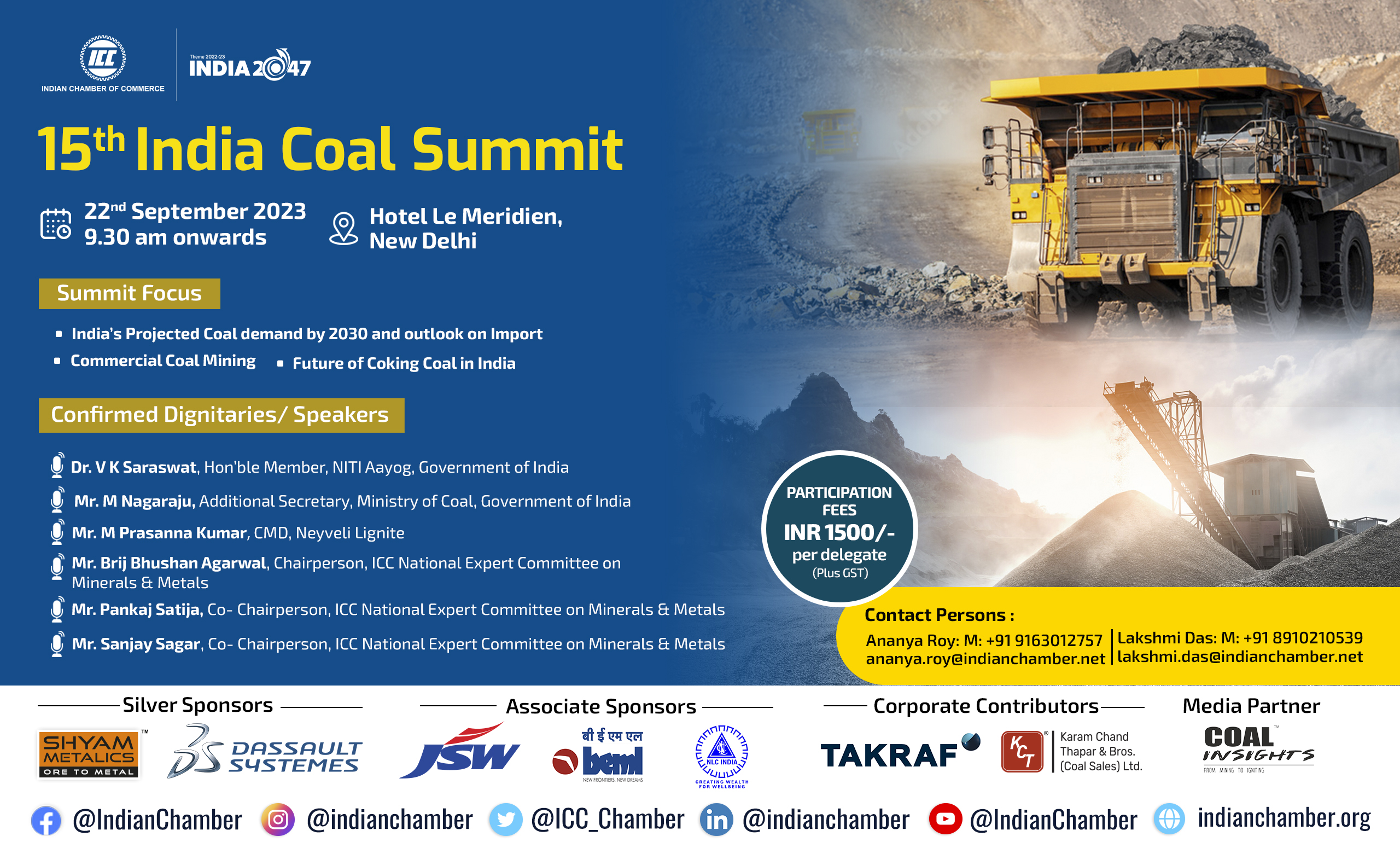 The Indian Chamber of Commerce (ICC) plays a significant role in the coal sector by acting as a bridge between the government, coal producers, and other stakeholders in the industry. It works on various fronts like Policy Advocacy, Industry Representation and Promoting Sustainable Practices through events, Facilitating Collaboration through B2B to promote the growth, development, and modernization of the coal industry.