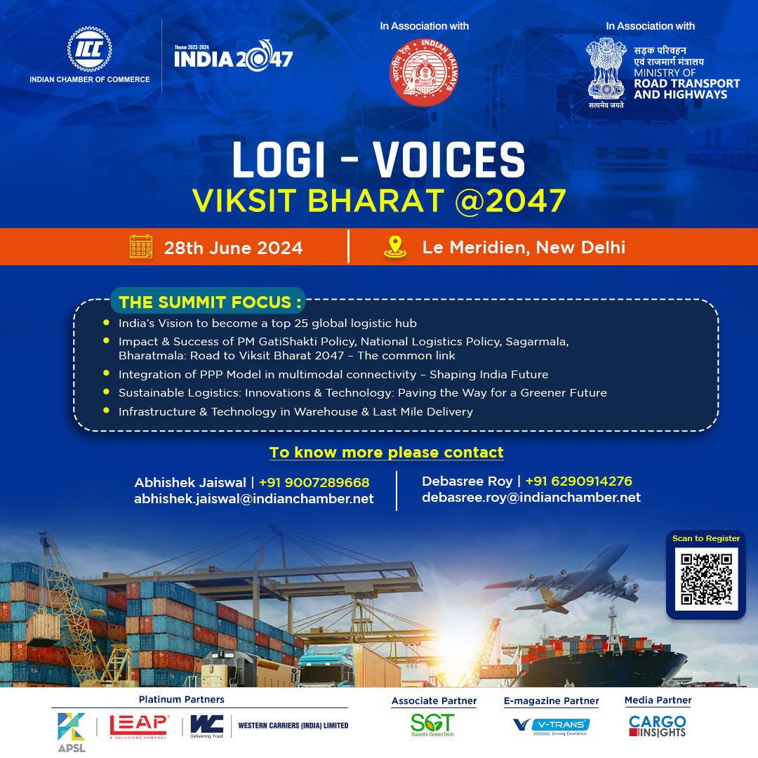 In the domain of logistics and supply chain, ICC has been continuously engaging with the Government through policy advocacy, thought leadership and events. Some of the prestigious events hosted by the ICC in this sector are Logi – Voices Viksit Bharat 2047; Rail India Forum; Navigating the Future: Multi-Modal Ecosystem in India. ICC also brings out the Logivoices magazine.